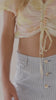 Blusa corta y ligera, con escote en pico y fruncido central.
