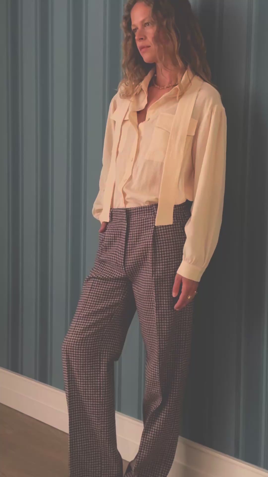 Camisa de algodón con lazada color crudo. Es de corte masculino relajado y tiene