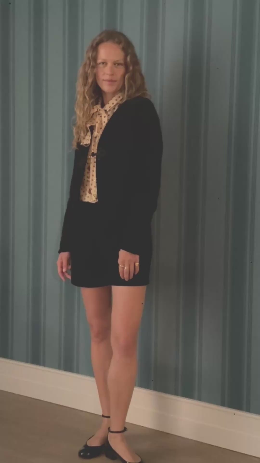 Con un bonito escote en V se cierra con alambres de pedrería color azabache. Va forrada, es ligera y se encaja perfectamente al cuerpo.