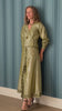 Falda larga realizada en algodón e hilaturas metalizadas color verde ciruela y plateado.